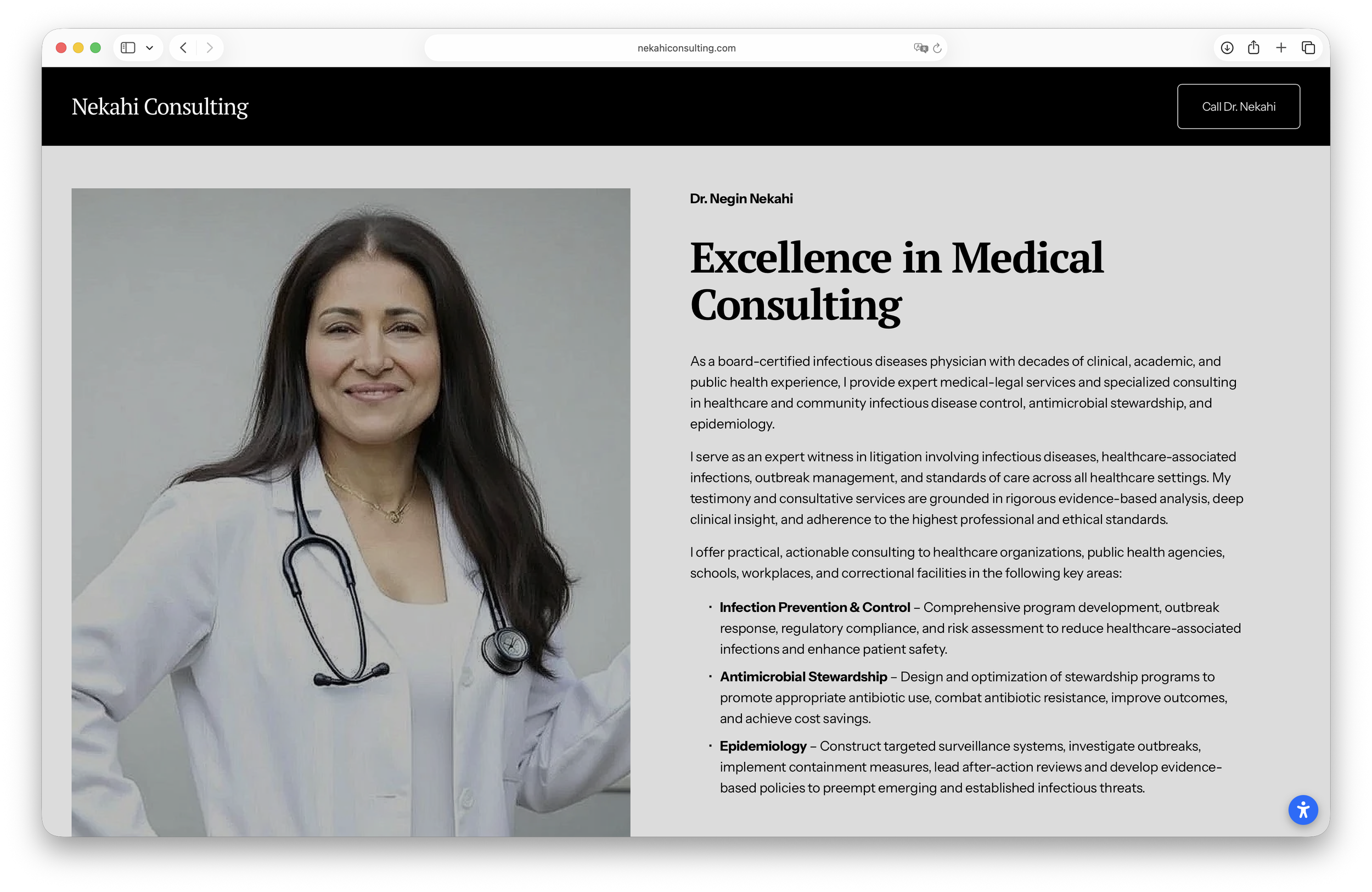 Website design for physician and expert medical witness, Dr. Negin Nekahi.